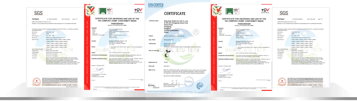 東莞全球環(huán)保科技有限公司總部位于東莞東部地區(qū)、公司致力于全生物降解材料和全生物降解秸稈復(fù)合材料的生產(chǎn)研發(fā),專業(yè)提供全生物降解 CCBM系列材科,PBAT、PBS、PLA樹(shù)脂及全生物降解膜袋、筒膜、餐具覆膜、阻隔膜、復(fù)合包裝膜、衛(wèi)生巾膜等產(chǎn)品。給塑料制造商和消費(fèi)者提供一站式全品類的解決方案和技術(shù)支援。產(chǎn)品已通過(guò)德國(guó)DIN CERTCO、歐洲TUV公司OK compost HOME認(rèn)證、國(guó)標(biāo)認(rèn)證GB/T19277.1-2011:符合歐盟EN13432、美國(guó)ASTMD6400、 BPI、澳洲ABA堆肥降解檢測(cè)標(biāo)準(zhǔn),并通過(guò)SGS公司檢測(cè)的FDA食品接觸安全測(cè)試、ROHS有害物質(zhì)檢測(cè)、REACH檢測(cè)。我司獲得國(guó)家高新技術(shù)企業(yè)認(rèn)證、通過(guò)了GRS驗(yàn)廠并且取得了GRS認(rèn)證,產(chǎn)品熱銷于歐洲、美國(guó)、亞洲等30多個(gè)國(guó)家。